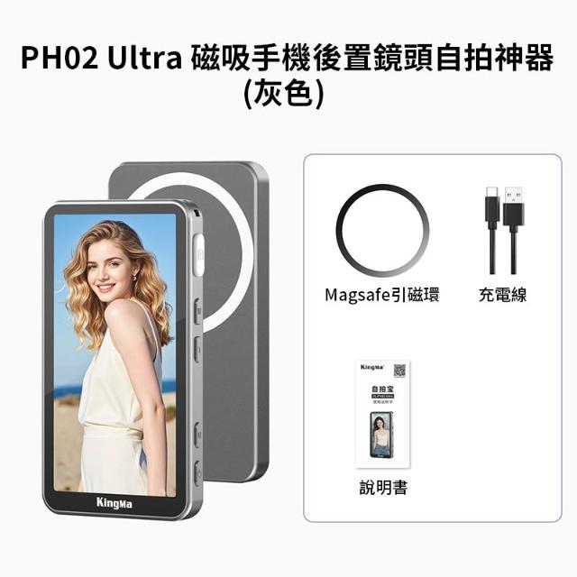 2025新款【Kingma PH02 Ultra 磁吸手機後置鏡頭自拍神器】*送引磁片 白/灰/紫 適用蘋果