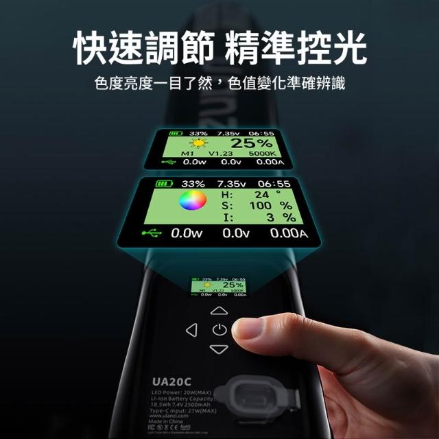 Ulanzi 優籃子【Ulanzi UA20C 20W RGB全彩便攜式磁吸氣柱燈】Type-C 可行動電源供電 棒燈 充氣燈 柔光燈 補光