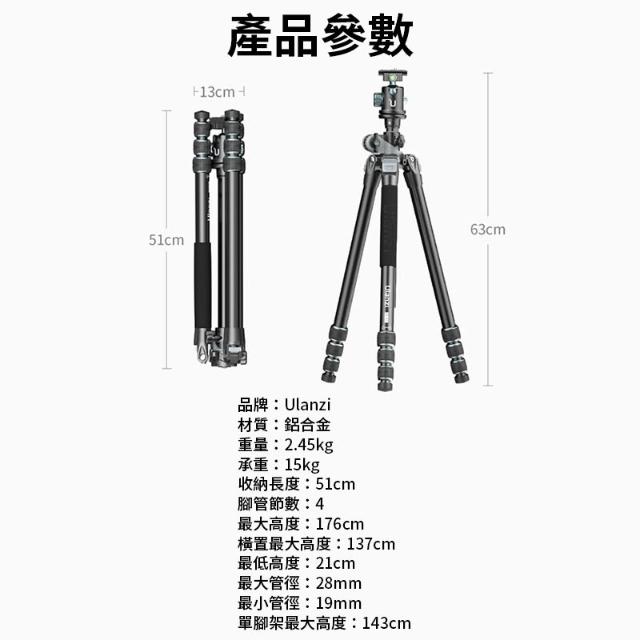 Ulanzi 優籃子【Ulanzi MT-59 多功能鋁合金三腳架】51-176cm 承重15kg 反摺三腳架 單腳架 全景雲台 俯拍 低角