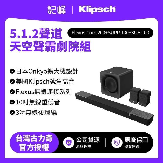 Klipsch黑款 Core 200+SUB 100+SURR 100 | 5.1.2天空聲霸劇院組