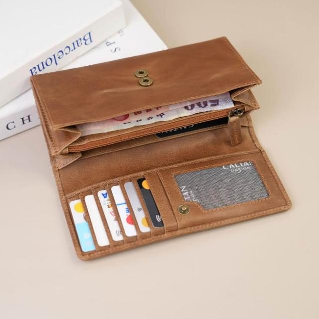 CALTAN DESIGN | 扣式真皮優美長夾 075169 四色(真皮 長夾 皮夾 錢包 招財 母錢包)