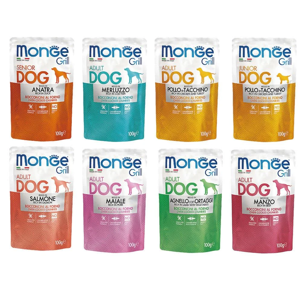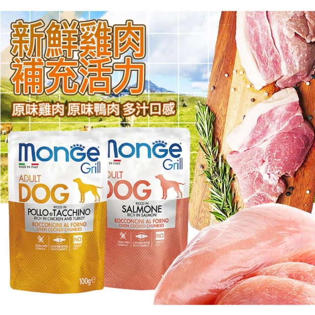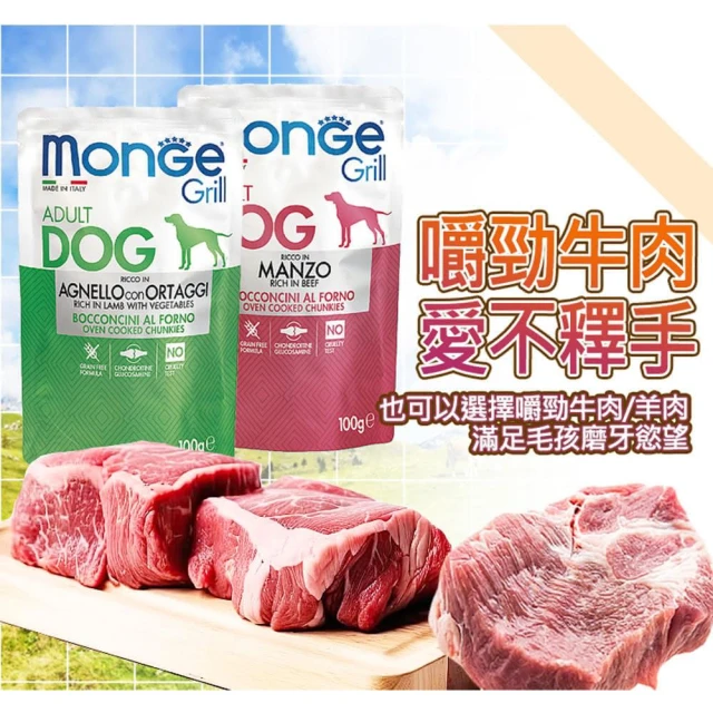 Monge 瑪恩吉Grill炙燒肉塊無穀犬餐包 100g 主食/全齡犬/狗罐/貓狗飼料/罐頭餐盒/零食點心