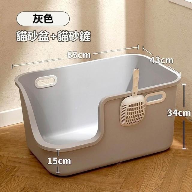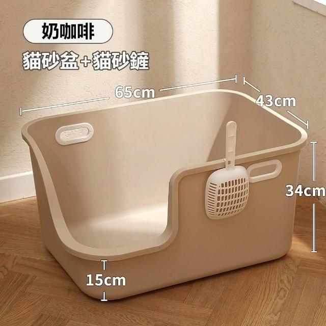 LIKE PET超大防濺款貓砂盆-贈貓砂鏟 (開放式 加深設計 鏟屎方便 半封閉式 貓便盆)