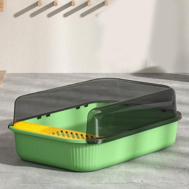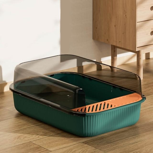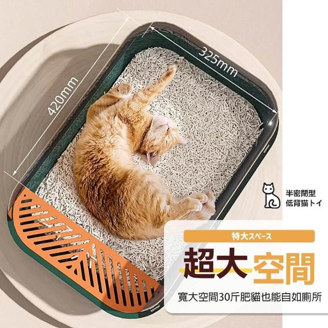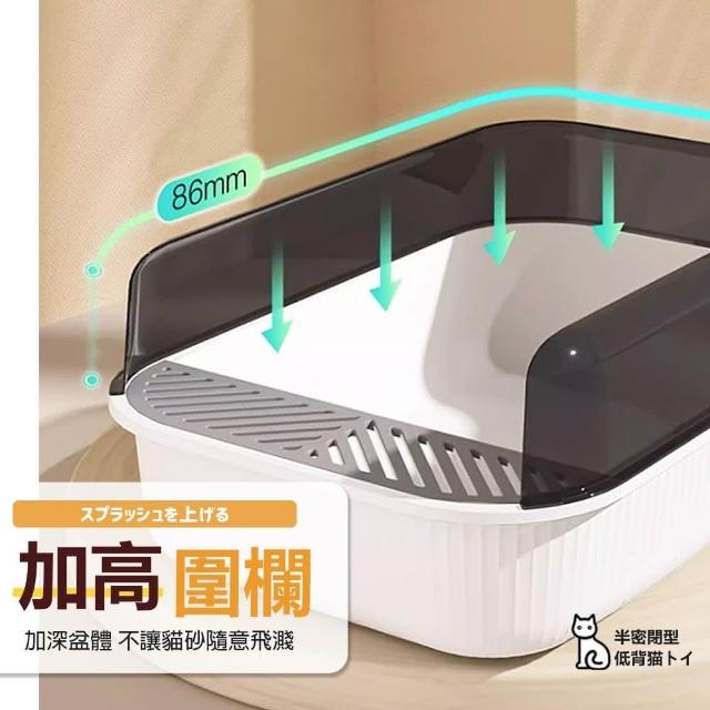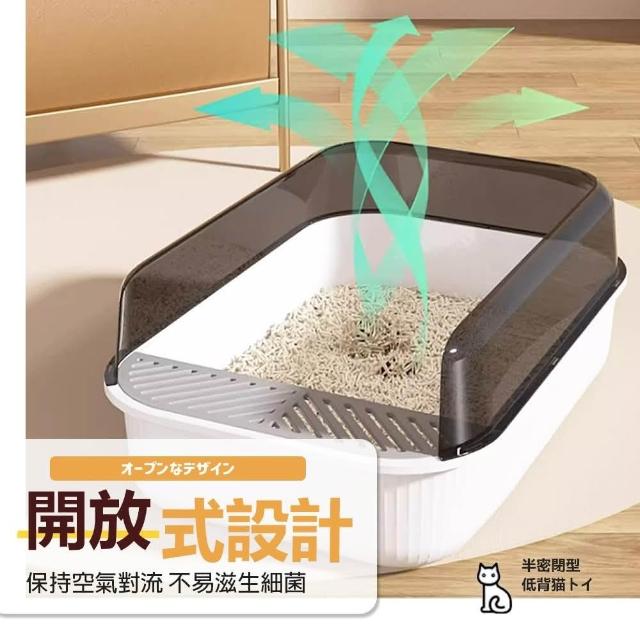 LIKE PET半封閉矮款貓砂盆-贈貓砂鏟半封閉式 踏板落砂孔設計 半罩式 貓便盆