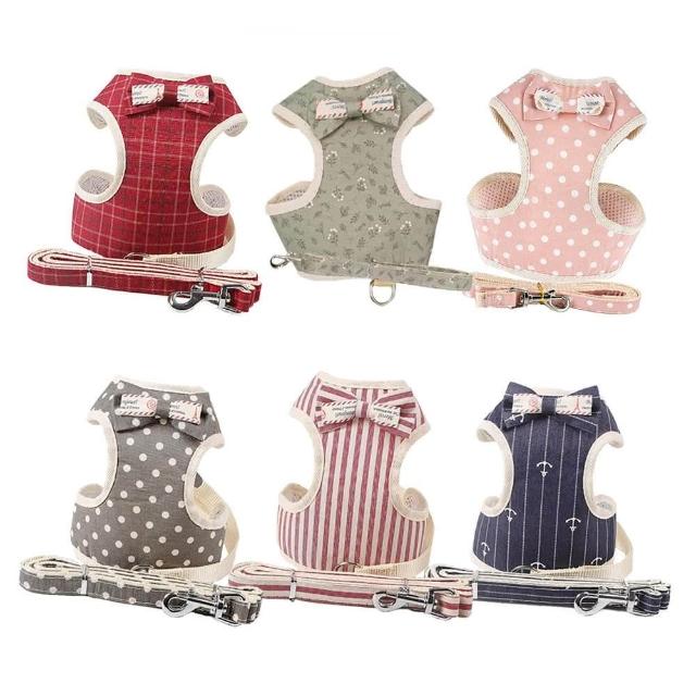 LIKE PET蝴蝶結寵物胸背帶-附牽繩 (貓狗背心 貓狗衣服 牽引繩 遛貓繩 遛狗繩)