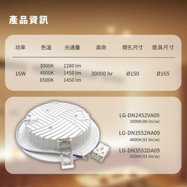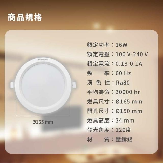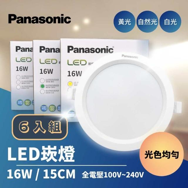 Panasonic 國際牌LED 嵌燈 16W 15公分 LED崁燈 6入組(全電壓 光色均勻)
