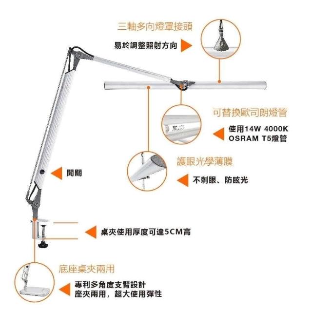 Osram 歐司朗晶硯T5 14W 雙臂檯燈 TF-8136