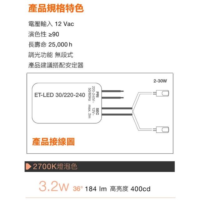 Osram 歐司朗OSRAM 歐司朗 MR11 反射型 LED 杯燈 12V GU4 黃光 2700K 3.2W 2.5W