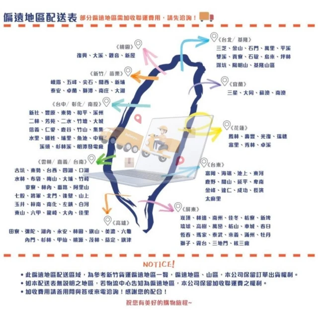 - 商店所提供的產品配送區域範圍目前僅限台灣本島。