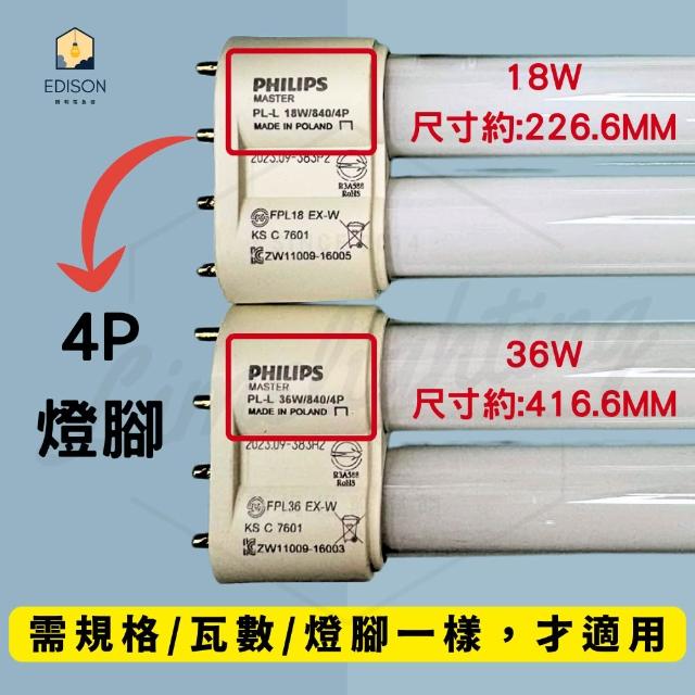 Philips 飛利浦PHILIPS 飛利浦 PL-L 4P 18W 36W 865 840 燈管