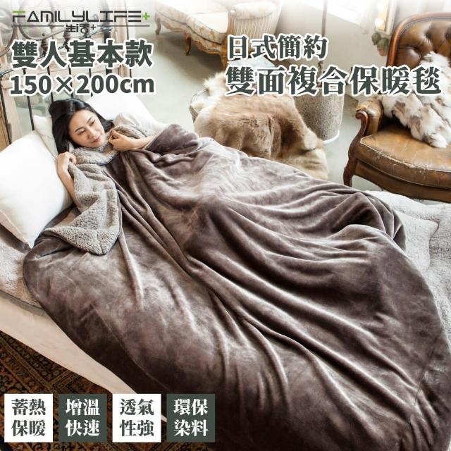 FL 生活+雙人基本款-150*200公分-日式簡約雙面法蘭絨/羊羔絨複合特重保暖毯 冷氣毯 冬被 舖床超溫暖 可機洗 可烘乾FL_244
