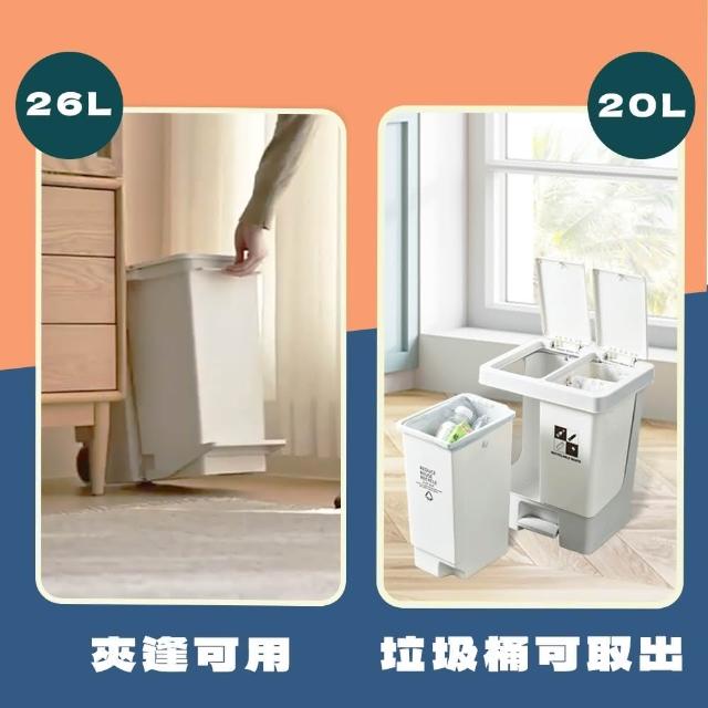 FL 生活+兩款任選-20/26公升免髒手腳踏/彈蓋2用雙槽垃圾桶靜音緩降/乾濕分離/資源回收桶