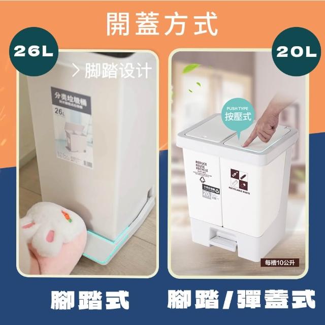 FL 生活+兩款任選-20/26公升免髒手腳踏/彈蓋2用雙槽垃圾桶靜音緩降/乾濕分離/資源回收桶