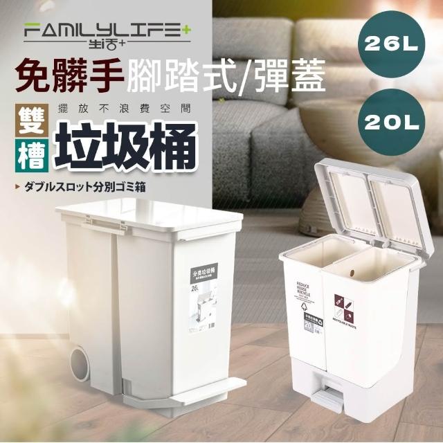 FL 生活+兩款任選-20/26公升免髒手腳踏/彈蓋2用雙槽垃圾桶靜音緩降/乾濕分離/資源回收桶