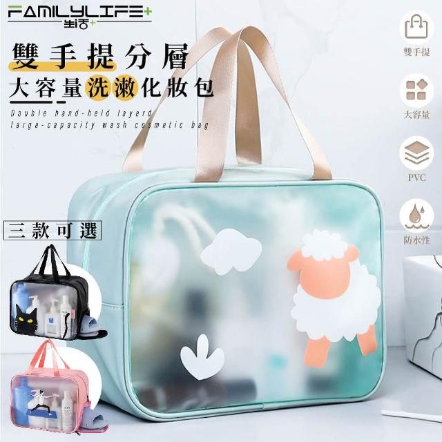 FL 生活+雙手提分層大容量洗漱化妝包(三色任選/收納袋/旅行包/收納包/盥洗包-S)