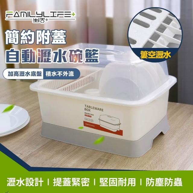 FL 生活+簡約附蓋自動瀝水碗籃-小型款廚房碗櫃/碗筷收納盒/收納箱/防蟲防塵/A-099