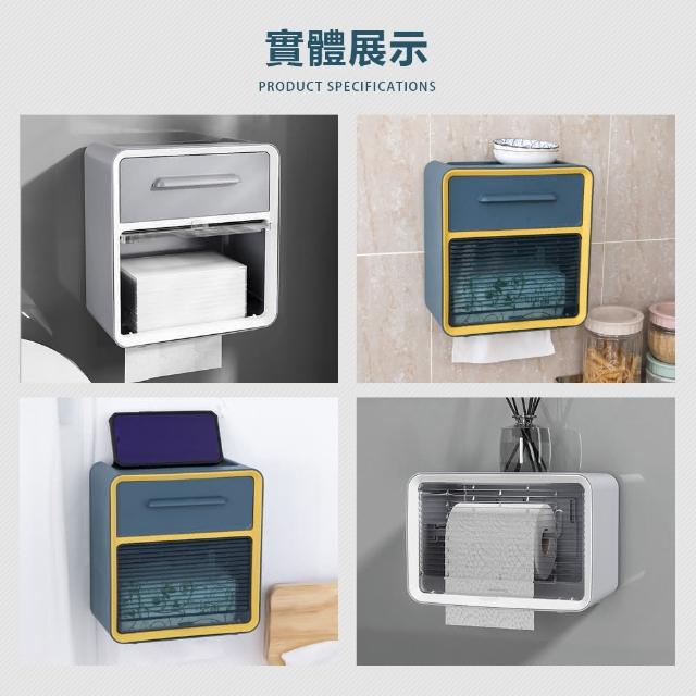 FL 生活+多功能無痕壁掛紙巾盒-單層款A_-084兩色任選/衛生紙收納盒/垃圾袋/防水/捲紙