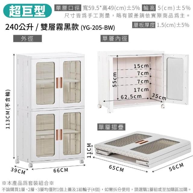 FL 生活+超巨型240公升雙開門可疊加附輪摺疊收納箱-雙層款櫃子 置物櫃 門櫃 收納櫃 收納箱 儲物
