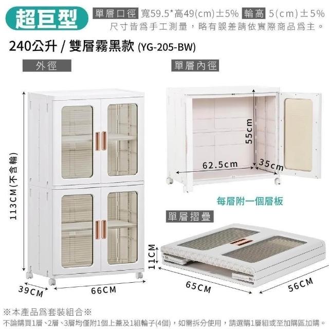FL 生活+人氣榜 超巨型360公升雙開門可疊加附輪摺疊收納箱系列收納箱/收納櫃/快速安裝/加強壁厚/磁吸門板/可疊加