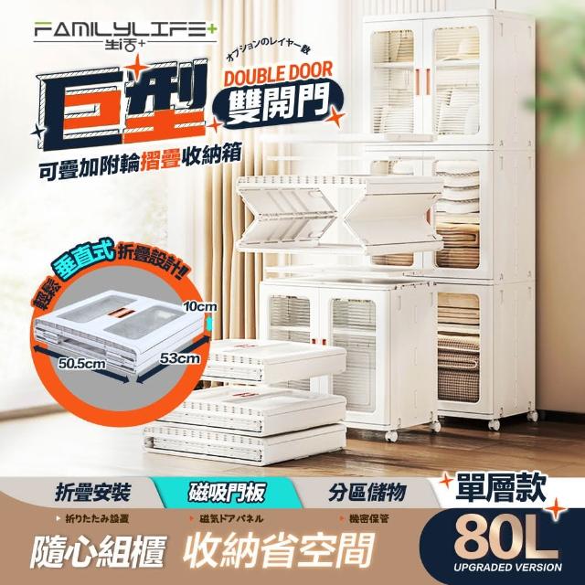 FL 生活+巨型80公升雙開門可疊加附輪摺疊收納箱-單層款櫃子/置物櫃/門櫃/收納櫃/收納箱/置物架/儲物