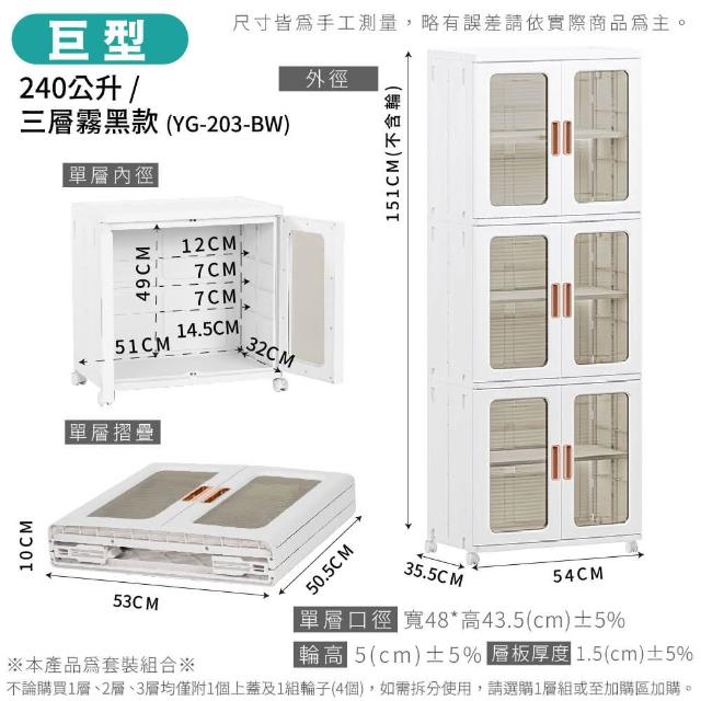 FL 生活+巨型240公升雙開門可疊加附輪摺疊收納箱-三層款櫃子/置物櫃/門櫃/收納櫃/收納箱/置物架/儲物