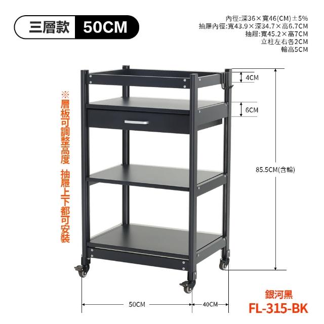 FL 生活+航太鋁可升降三層-寬50-附輪耐重置物架-40*50*85.5電器架 微波爐架 收納架 展示架 層架 廚房層架 廚房收納架FL-315