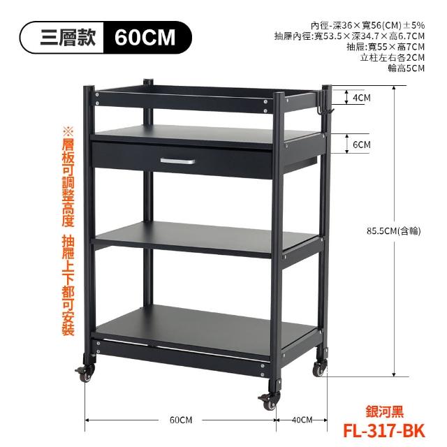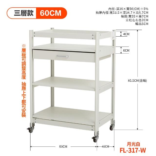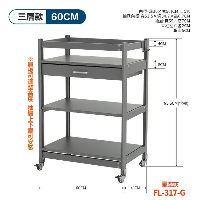 FL 生活+航太鋁可升降三層-寬60-附輪耐重置物架-40*60*85.5電器架 微波爐架 收納架 展示架 層架 廚房層架 廚房收納架FL-317