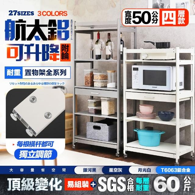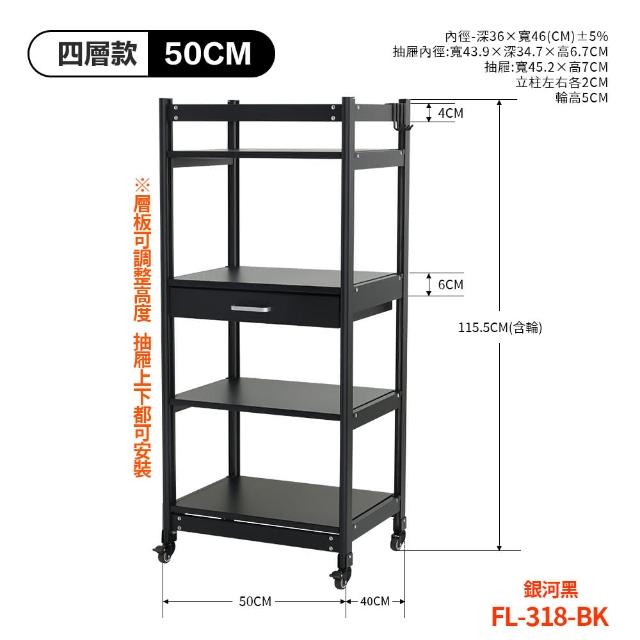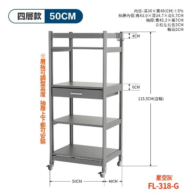 FL 生活+航太鋁可升降四層-寬50-附輪耐重置物架-40*50*115.5電器架 微波爐架 收納架 展示架 層架 廚房層架 廚房收納架FL-318