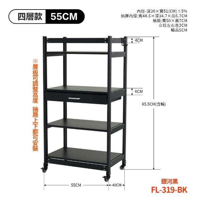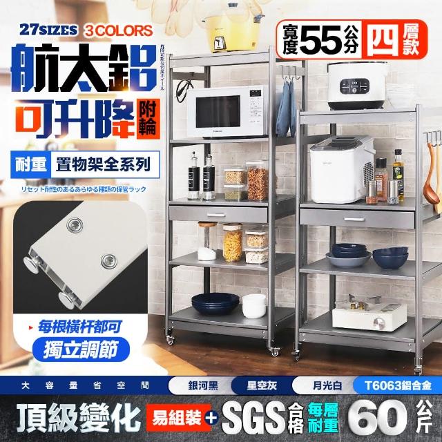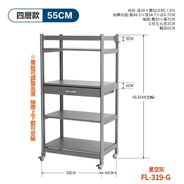 FL 生活+航太鋁可升降四層-寬55-附輪耐重置物架-40*55*115.5電器架 微波爐架 收納架 展示架 層架 廚房層架 廚房收納架FL-319
