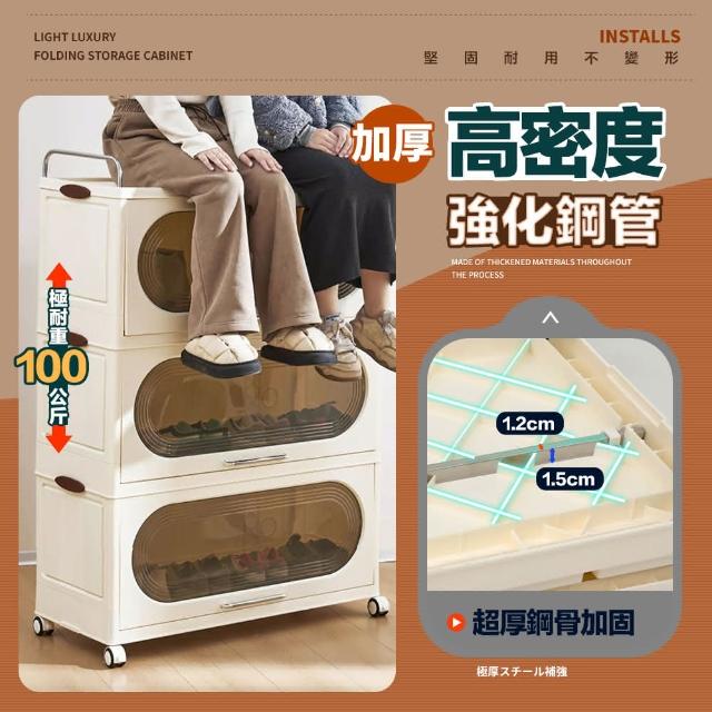 FL 生活+超耐重180公升鋼骨3層可疊加附輪折疊收納箱收納櫃/鋼骨/超耐重100KG/磁吸門板/YG-216