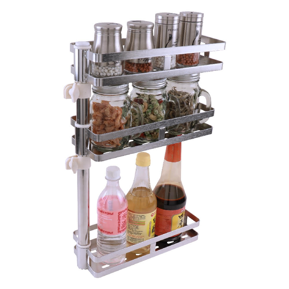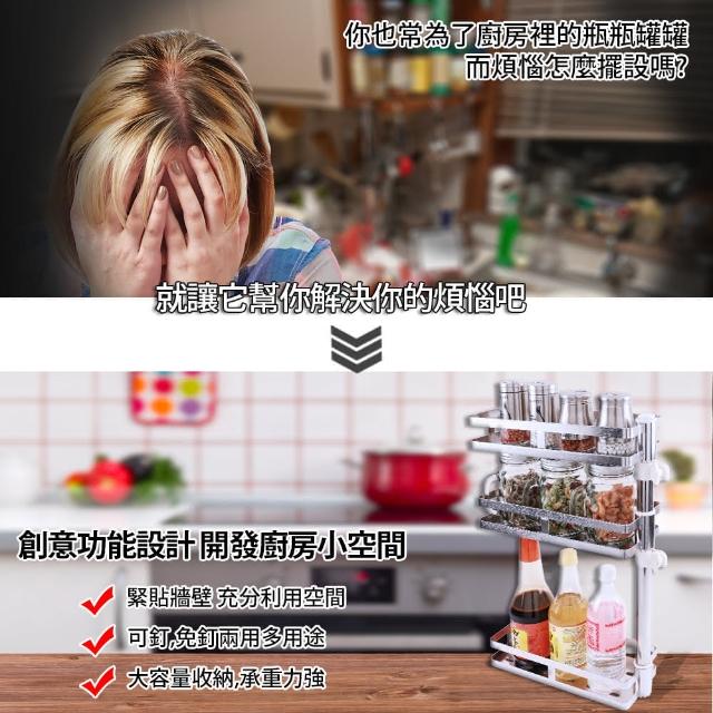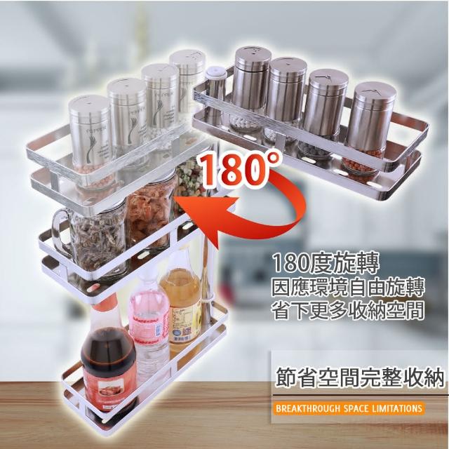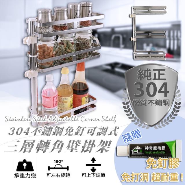 FL 生活+304不銹鋼可調式免釘3層轉角壁掛架FL-119(調料架免打孔壁掛架可旋轉 免鑽孔廚房浴室置物架 廚房調料置物架 不銹鋼調料架)