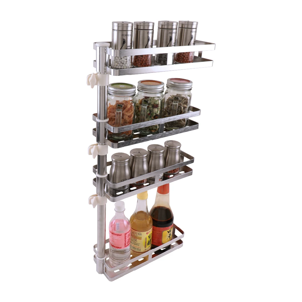 FL 生活+304不銹鋼可調式免釘4層轉角壁掛架FL-120(調料架免打孔壁掛架可旋轉 免鑽孔廚房浴室置物架 廚房調料置物架 不銹鋼調料架)