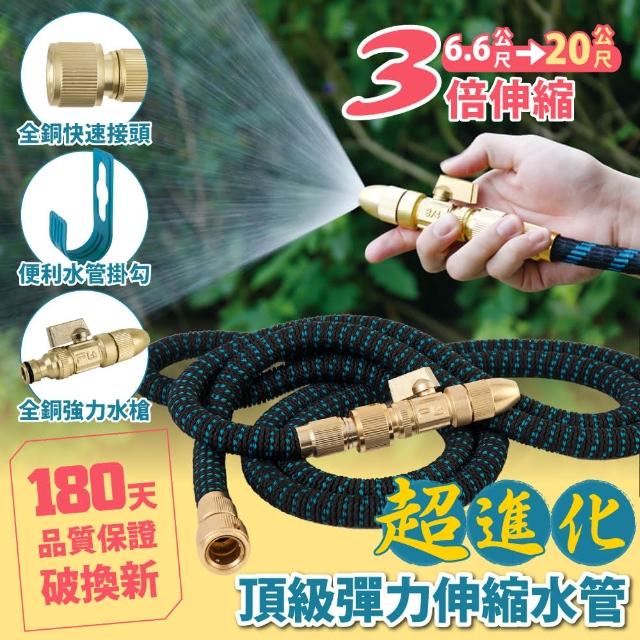 FL 生活+20公尺彈力水管大全配-旗艦級防爆高壓伸縮組4件套-水管+掛勾+銅噴槍+轉接頭/FL-254