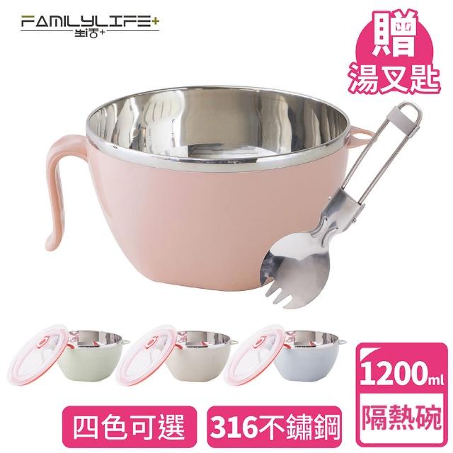 FL 生活+頂級316不鏽鋼隔熱泡麵碗1200ml贈湯叉匙 不鏽鋼隔熱碗 不鏽鋼碗 不鏽鋼餐具 泡麵碗 環保餐具 碗 隔熱碗