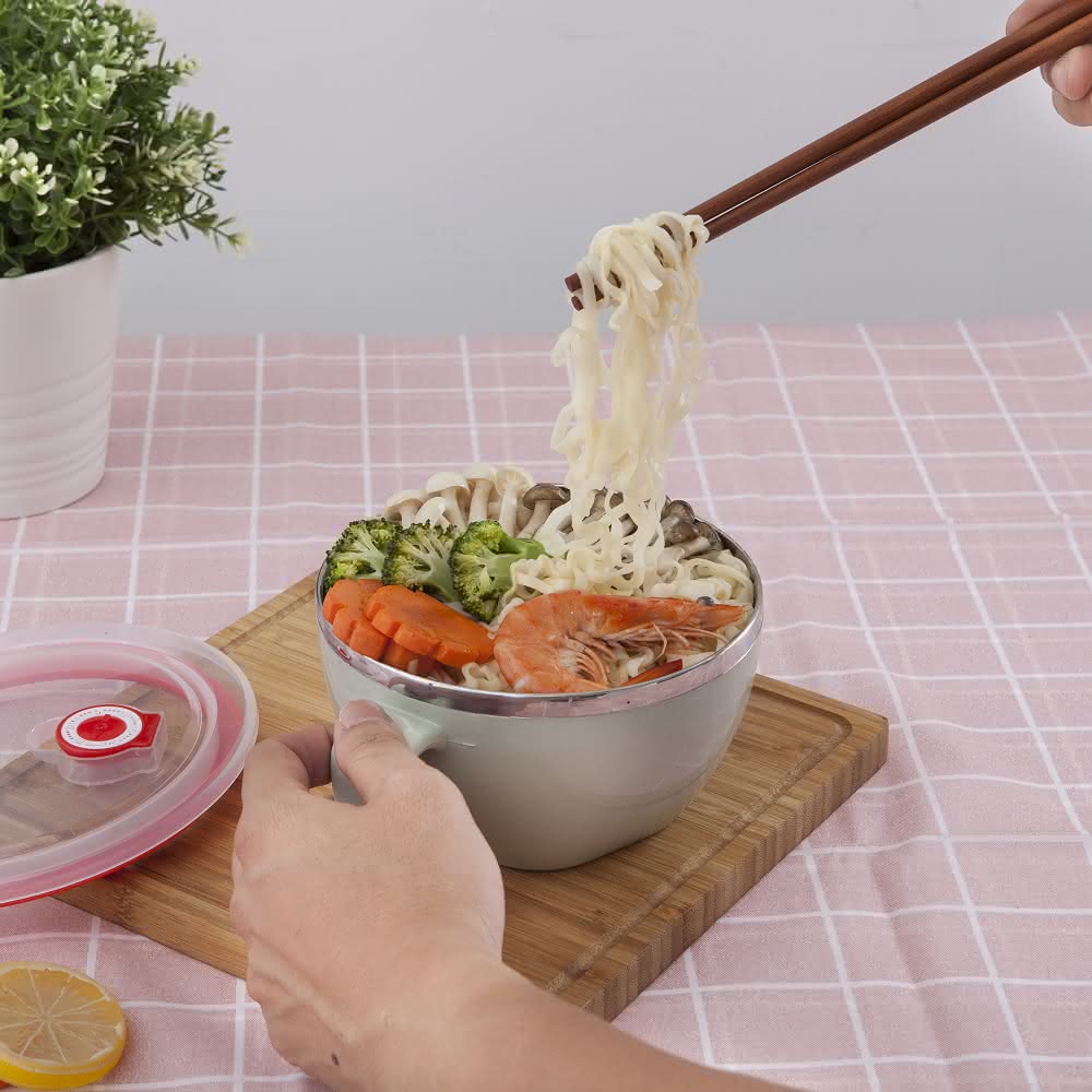 FL 生活+頂級316不鏽鋼隔熱泡麵碗1200ml贈湯叉匙 不鏽鋼隔熱碗 不鏽鋼碗 不鏽鋼餐具 泡麵碗 環保餐具 碗 隔熱碗