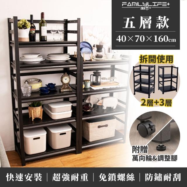 FL 生活+快裝式岩熔碳鋼五層耐重置物架-40*70*160貨架 廚房收納架 微波爐架 書架FL-272