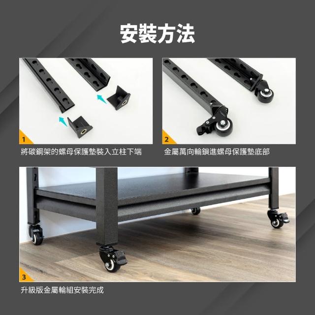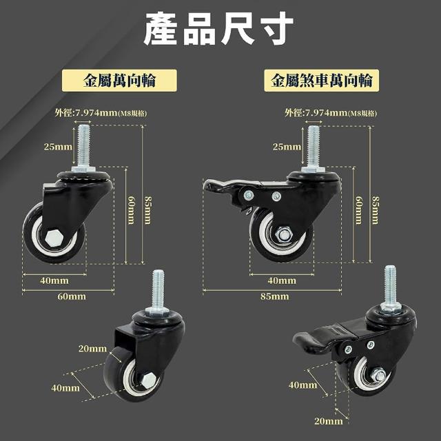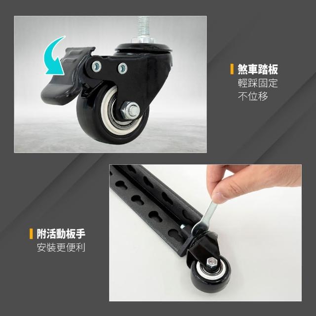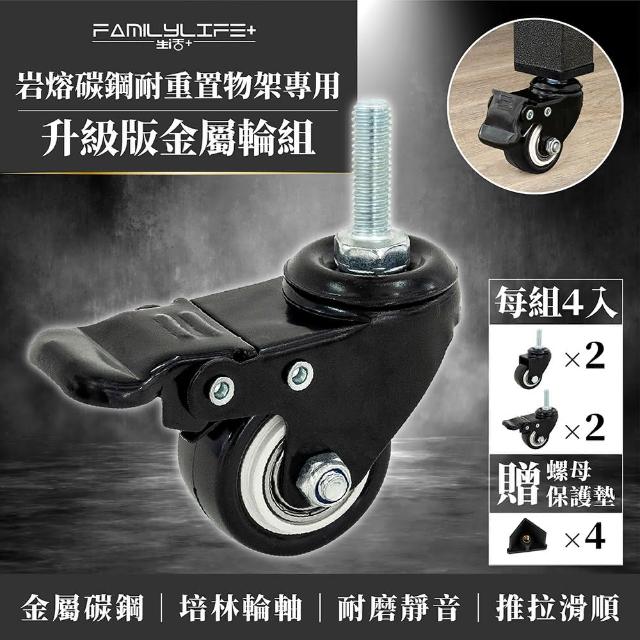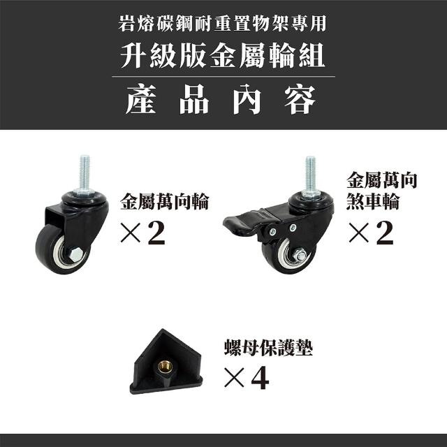 FL 生活+岩熔碳鋼耐重置物架專用-升級版金屬輪組萬向輪*2+萬向煞車輪*2+扳手*1