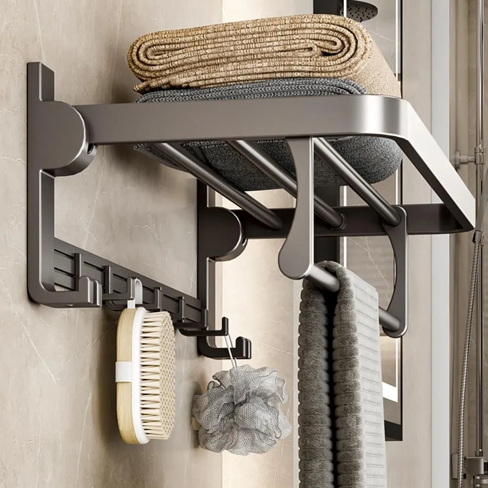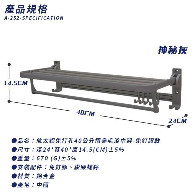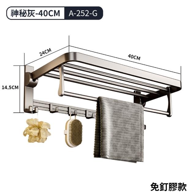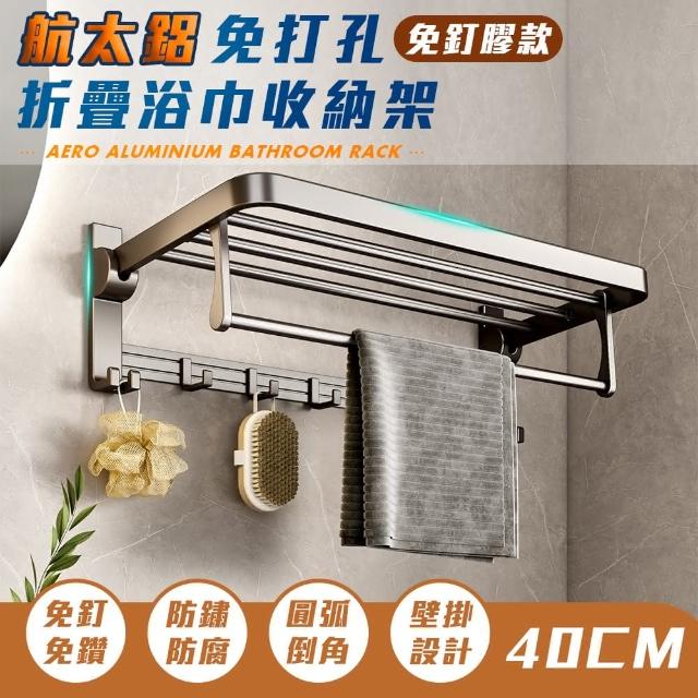 FL 生活+航太鋁免打孔40公分摺疊毛浴巾架-免釘膠款衛浴收納架 毛巾架 置物架 可折疊 浴巾架