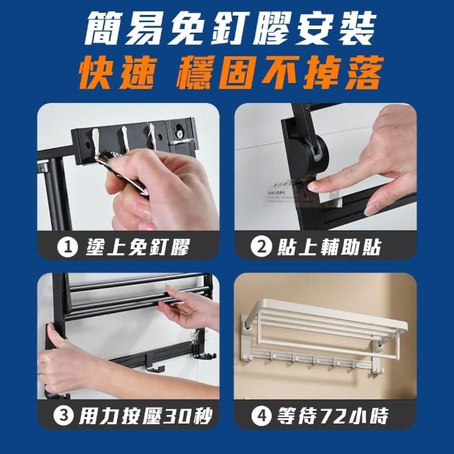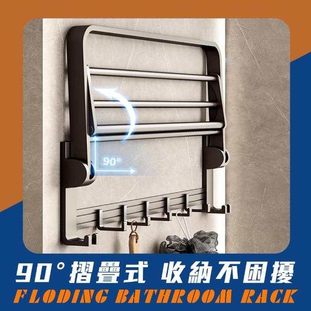 FL 生活+航太鋁免打孔40公分摺疊毛浴巾架-免釘膠款衛浴收納架 毛巾架 置物架 可折疊 浴巾架