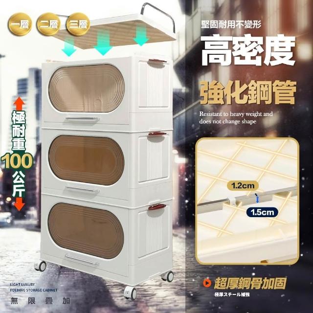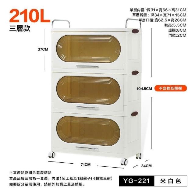 FL 生活+360公升超耐重鋼骨可疊加附輪折疊收納箱系列 收納櫃 耐重100公斤 強化鋼管 金屬推桿 磁吸關門 隱藏門