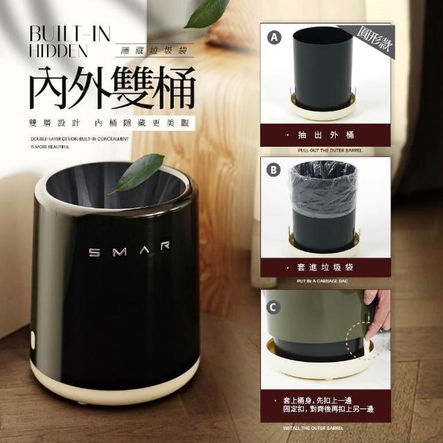 FL 生活+輕奢風柔潤垃圾桶(10L/12L)-圓形款/方形款 內外桶設計 高質感鏡面外桶 圓弧流線造型