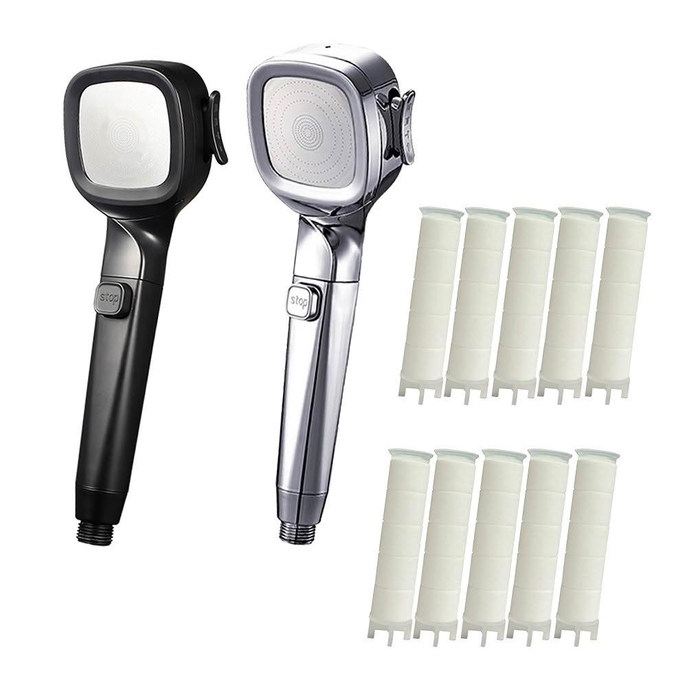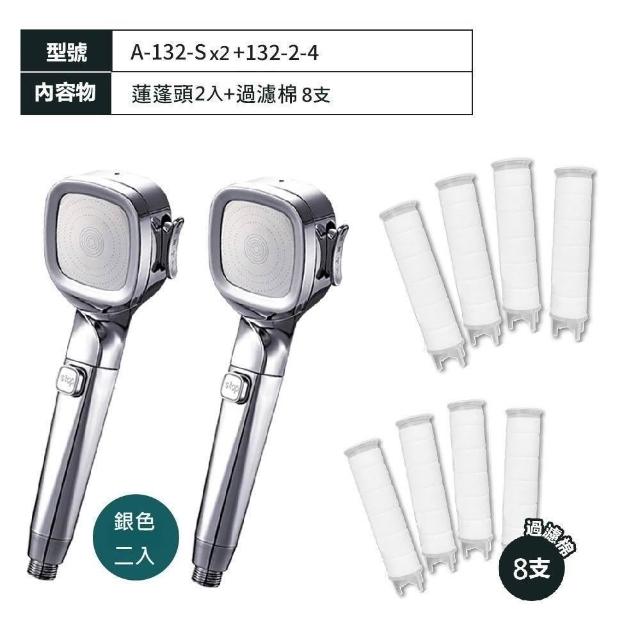FL 生活+白武士增壓四檔蓮蓬頭2+8超值組蓮蓬頭x2+過濾棉x8/加壓/淋浴/噴槍/一鍵止水