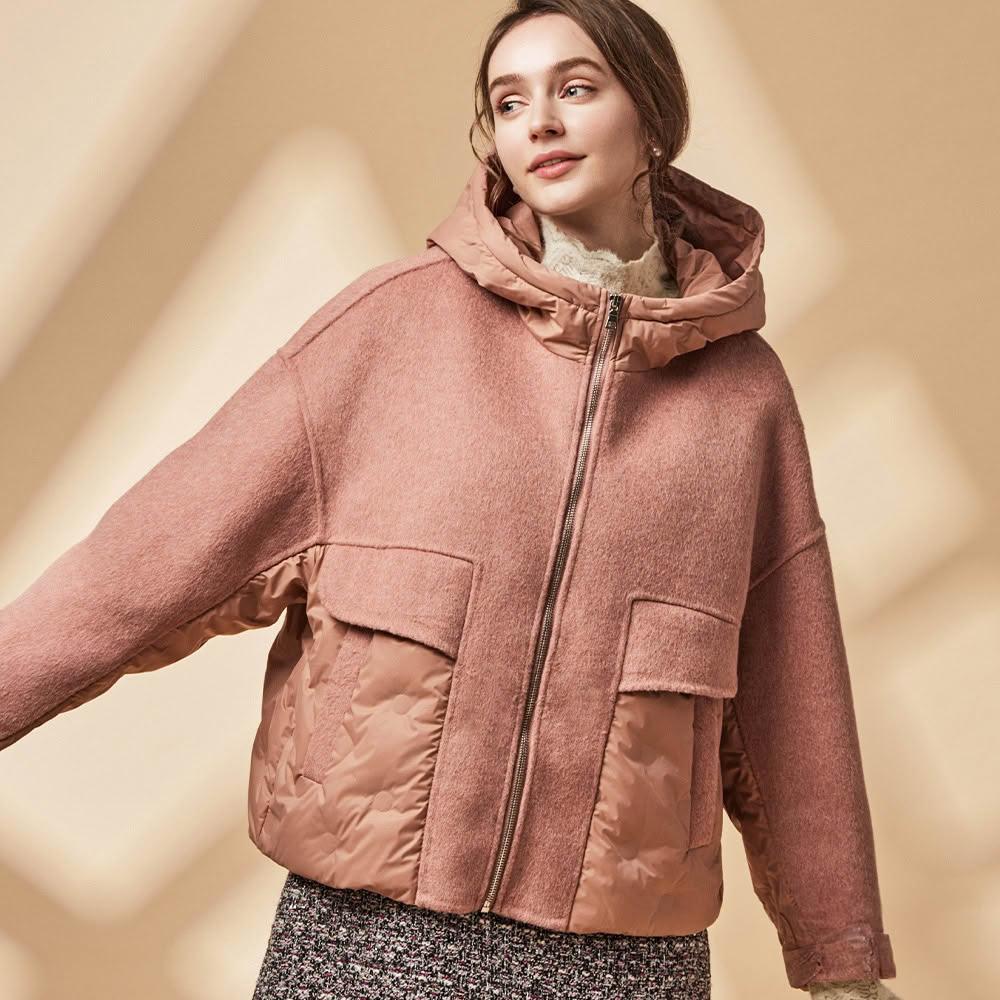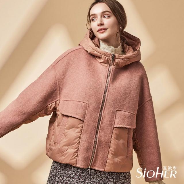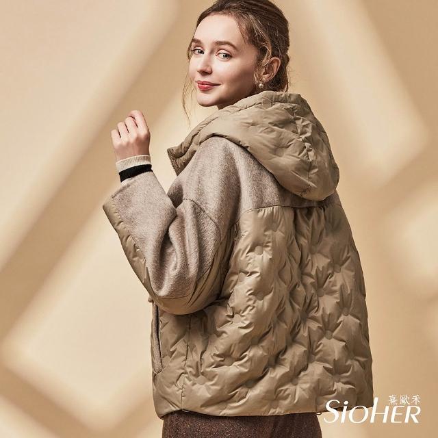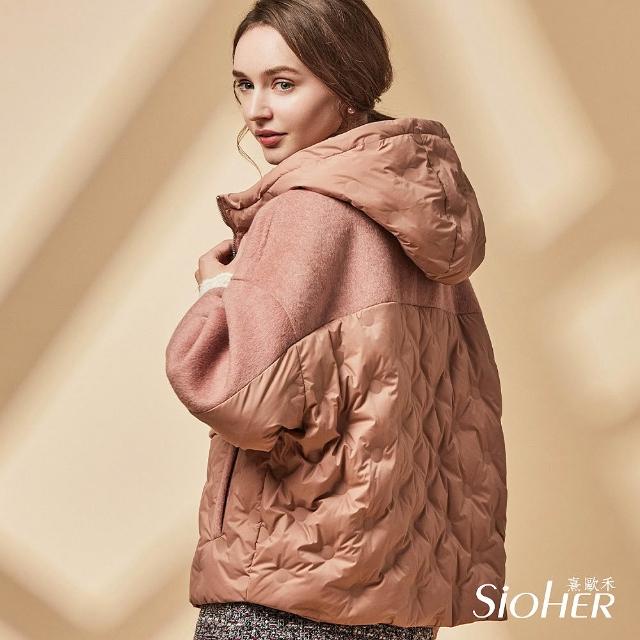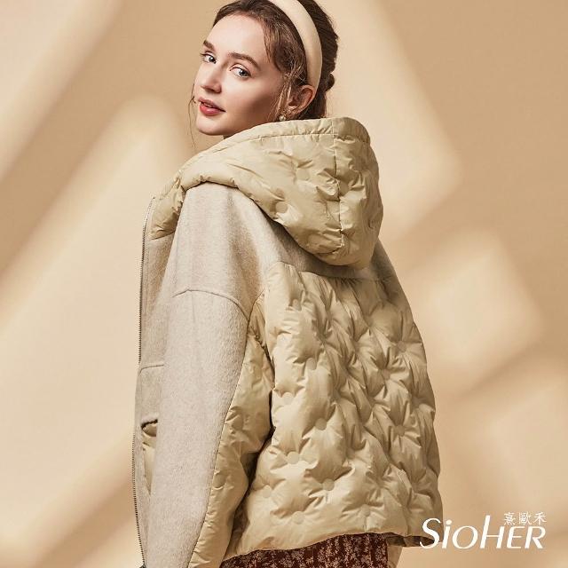 SiOHER 熹歐禾◆現貨 單套組 拼接羊毛羽絨連帽外套/女裝/女上衣/女外套/羽絨外套