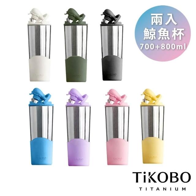 TiKOBO 鈦工坊鈦杯 純鈦鯨魚杯二代 兩入組 700ml+800ml 附細吸管 多色可選 環保杯 冰霸杯 保冰杯 咖啡杯 水壺 保溫瓶