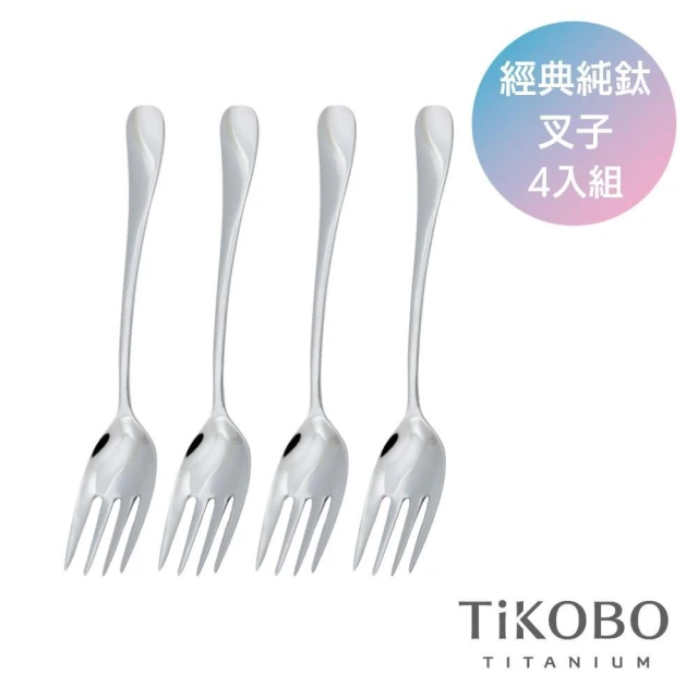 TiKOBO 鈦工坊純鈦叉子4入 19cm ( 點心叉 甜點叉 西餐叉 水果叉 餐具 長柄 非不鏽鋼 送禮 )