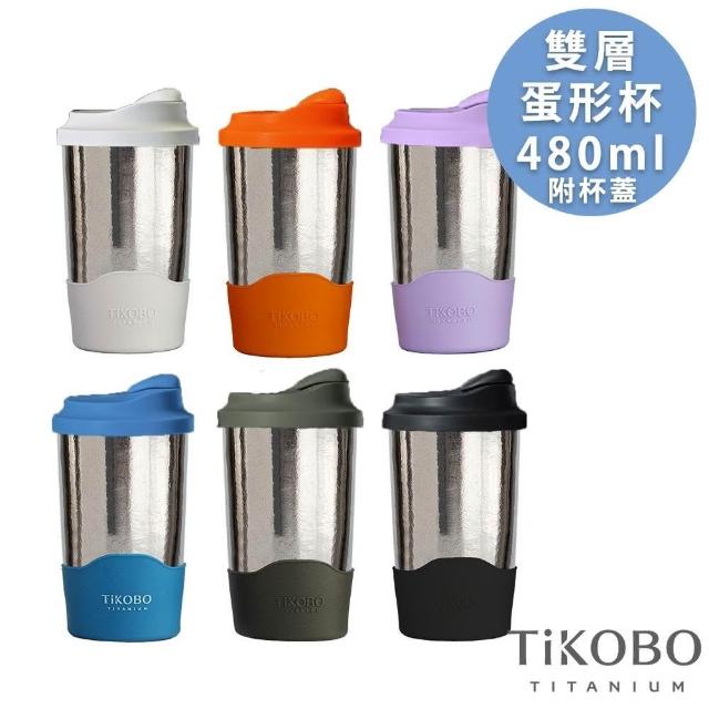 TiKOBO 鈦工坊鈦杯 480ml純鈦雙層真空蛋形杯 含上蓋+底套 多色可選 ( 馬克杯 咖啡杯 環保杯 隔熱杯 隨行杯 辦公室杯)