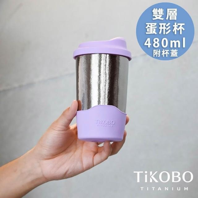TiKOBO 鈦工坊鈦杯 480ml純鈦雙層真空蛋形杯 含上蓋+底套 多色可選 ( 馬克杯 咖啡杯 環保杯 隔熱杯 隨行杯 辦公室杯)