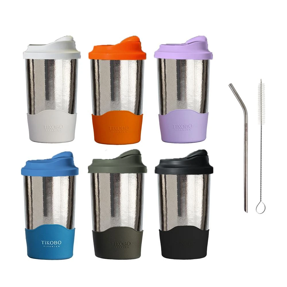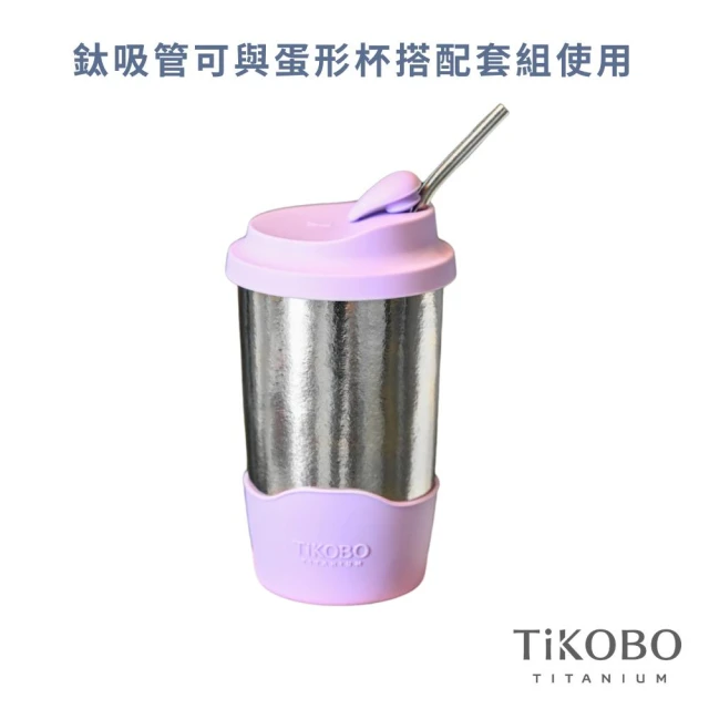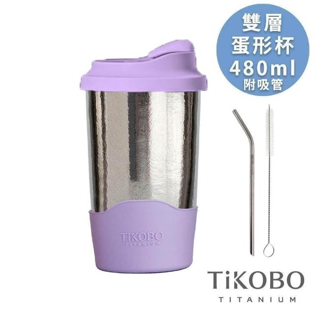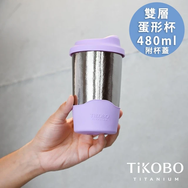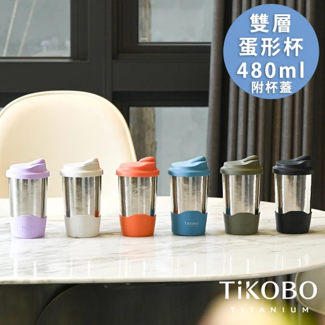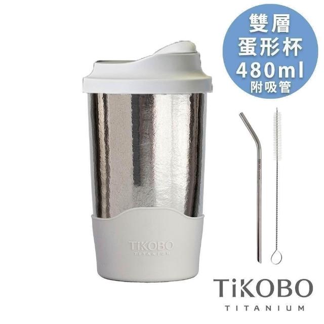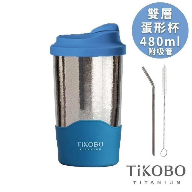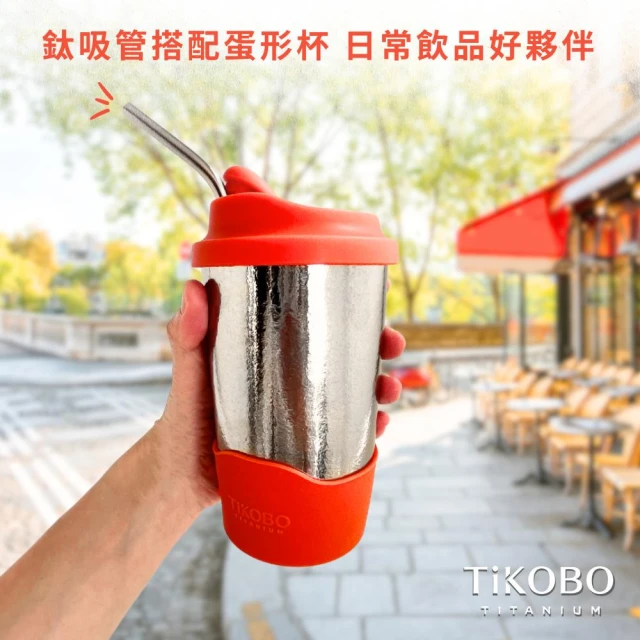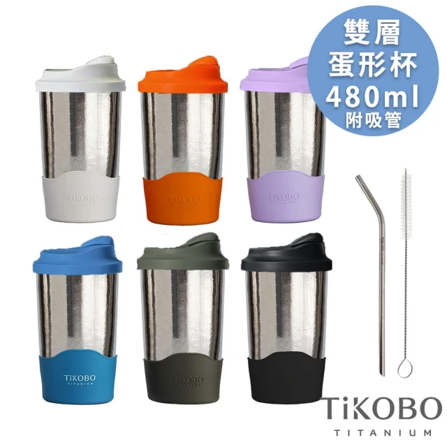 TiKOBO 鈦工坊鈦杯 480ml純鈦雙層真空蛋形杯 含上蓋+底套 多色可選 含細吸管(馬克杯 咖啡杯 環保杯 隔熱杯 隨行杯)