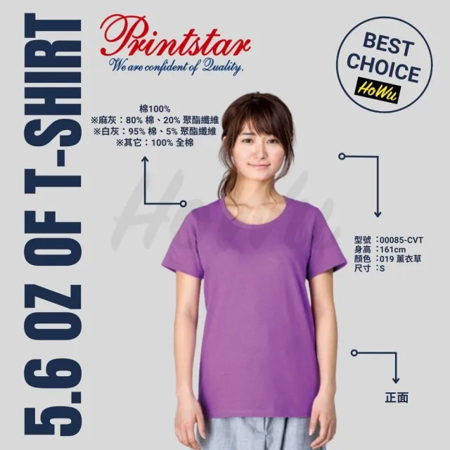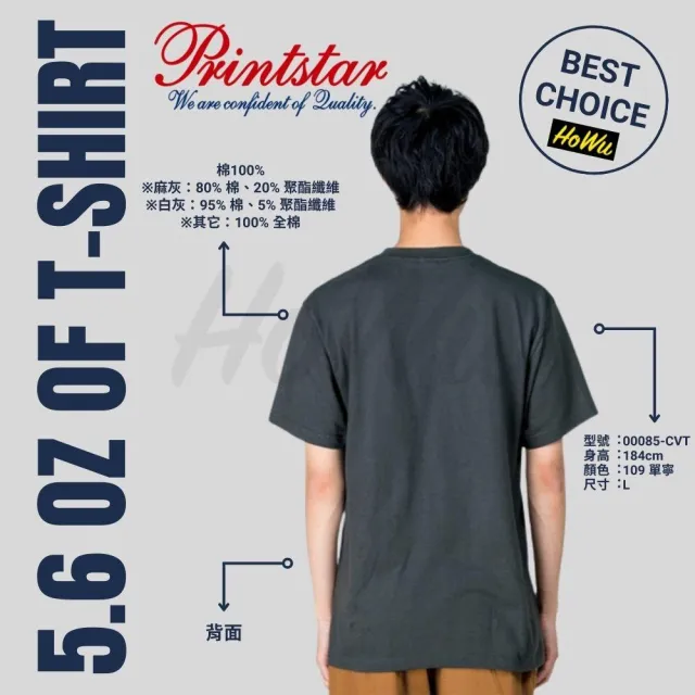 PRINTSTAR日本全棉圓領T恤5.6oz短T (00085-CVT) | Howu好物商城(PRINTSTAR素色圓領短T)