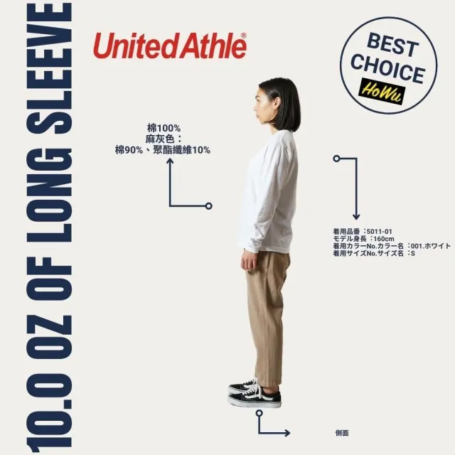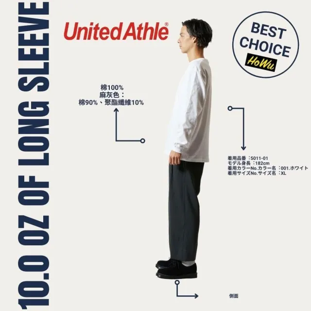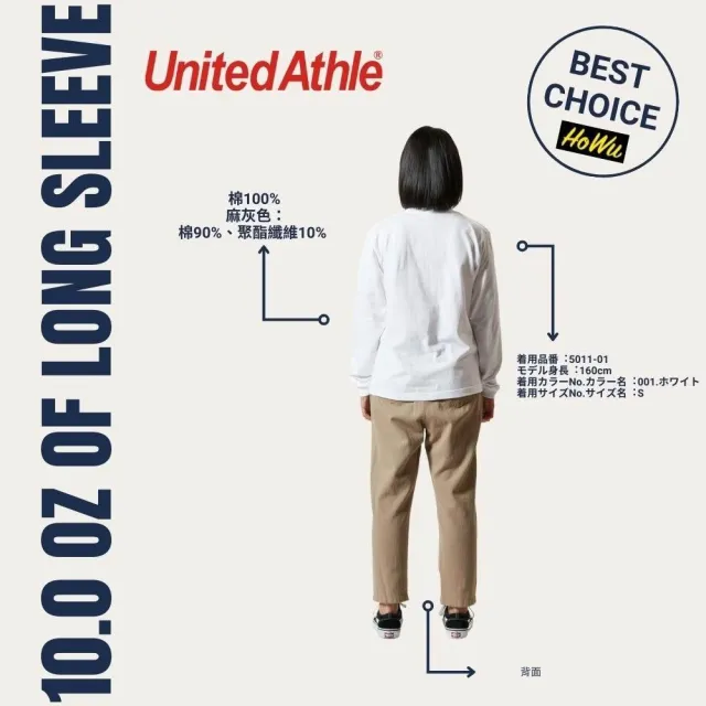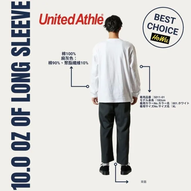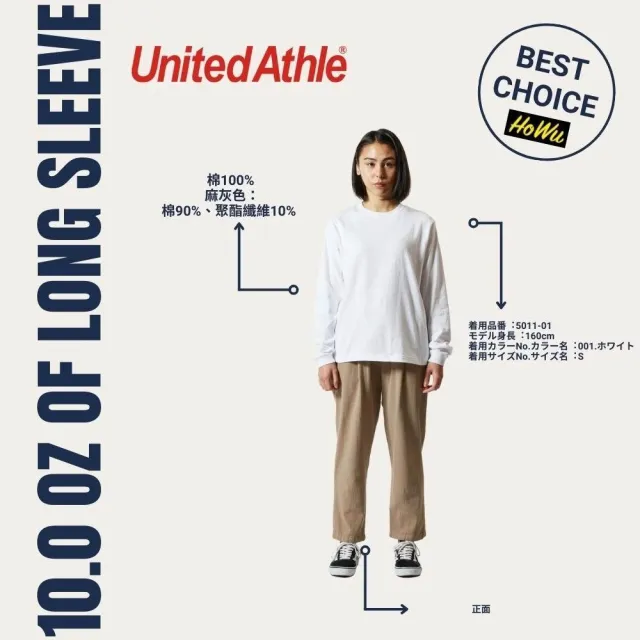 United Athle日本頂級柔棉5.6oz.長袖T恤/1.6英吋袖口羅紋 (5011-01) | Howu好物商城(UA素色長T)